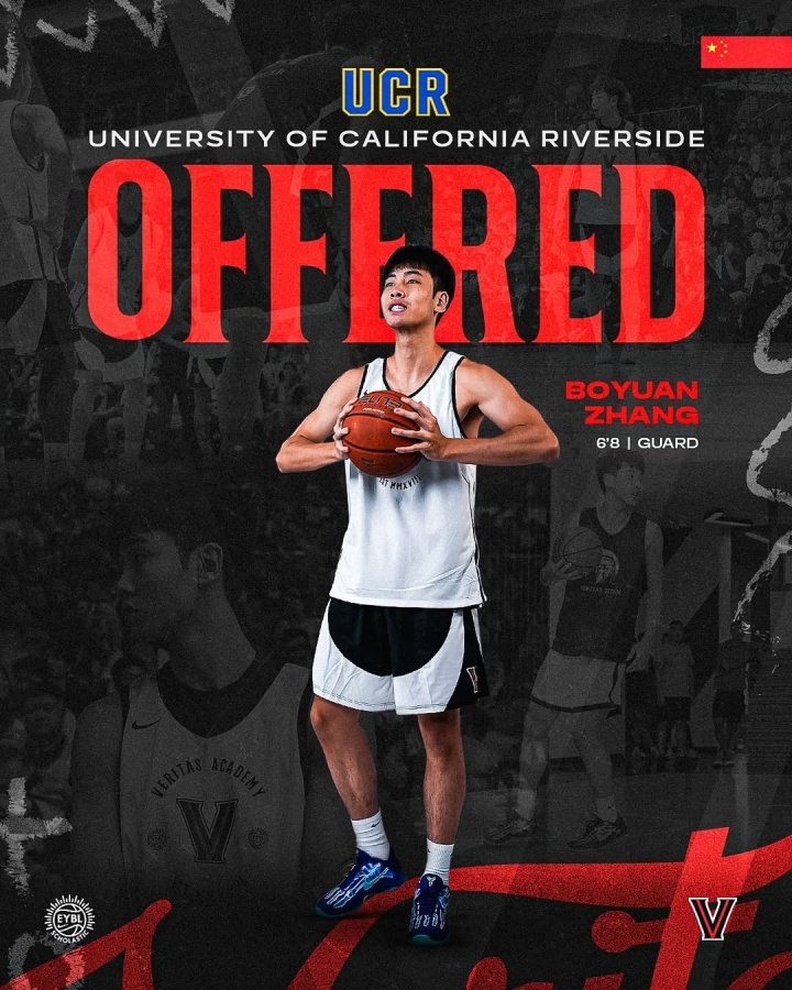 加油~旅美新星张博源获得NCAA一级联盟加州大学河滨分校的offer
