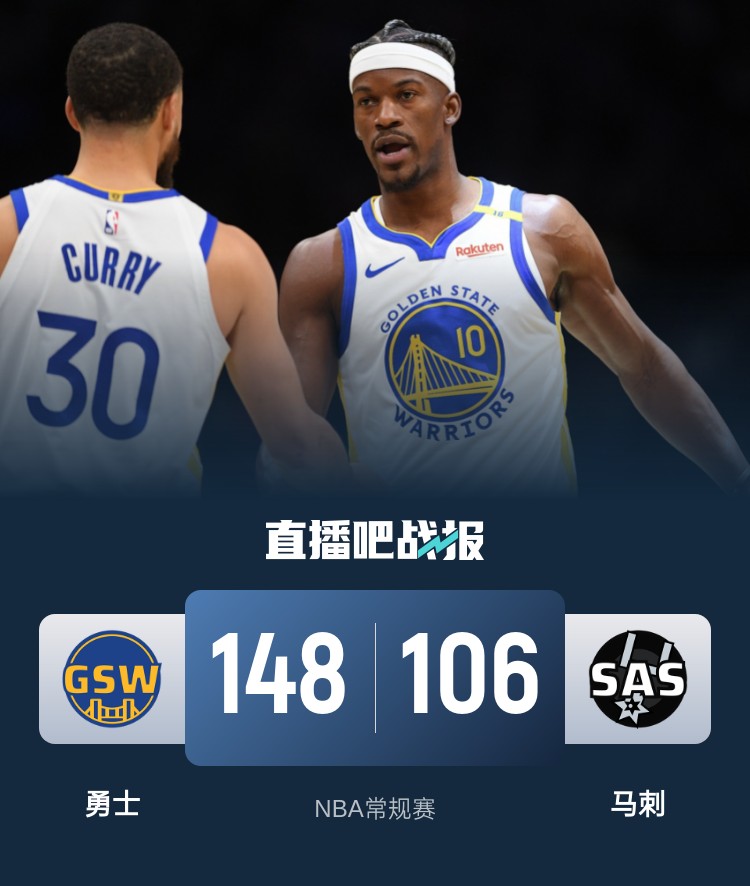 波杰姆斯基27+6+5 库里巴特勒三节打卡 勇士42分大胜马刺