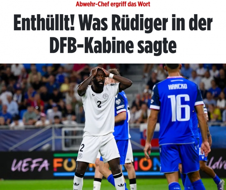 09月05日讯 今天凌晨的欧洲区世预赛,德国爆冷0-2不敌斯洛伐克,遭遇本组开门黑。据《图片报》透露,后防领袖吕迪格赛后在更衣室喊话呼吁全队团结。