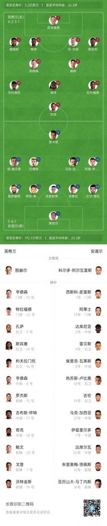 09月06日讯 世预赛K组,英格兰主场对阵安道尔。赛前,双方首发出炉!