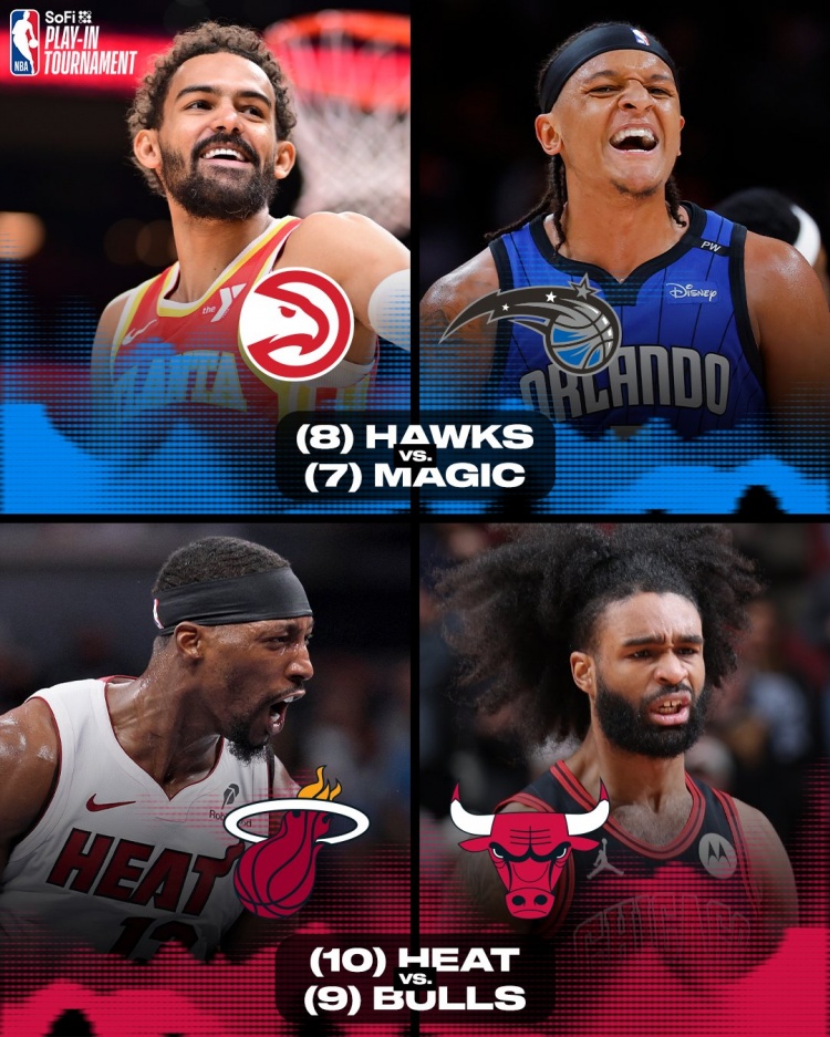 首日魔术将在东部7-8名对决中主场迎战老鹰,勇士则坐镇主场对阵灰熊。次日,热火将客场挑战公牛,而独行侠则将与国王展开较量。以下是露天看台的Andy Bailey基于各支球队及球员数据、近期表现、主场优势以及主观判断,对四场比赛进行的预测。