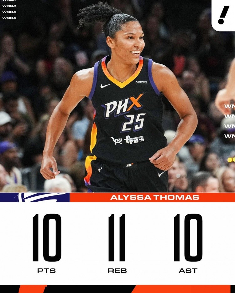 本场比赛,水星球星艾莉莎-托马斯拿到10分11板10助攻的三双数据。这样一来,她本赛季的三双次数来到了8次,继续刷新上个月她自己创造的7次的记录。而原本的记录是2023年她创造的单赛季6次。