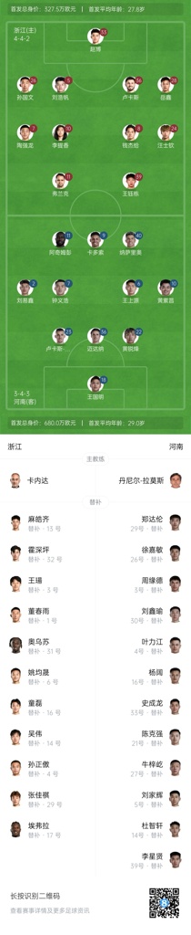 浙江vs河南首发:2外援PK5外援,王钰栋、纳萨里奥、王上源出战