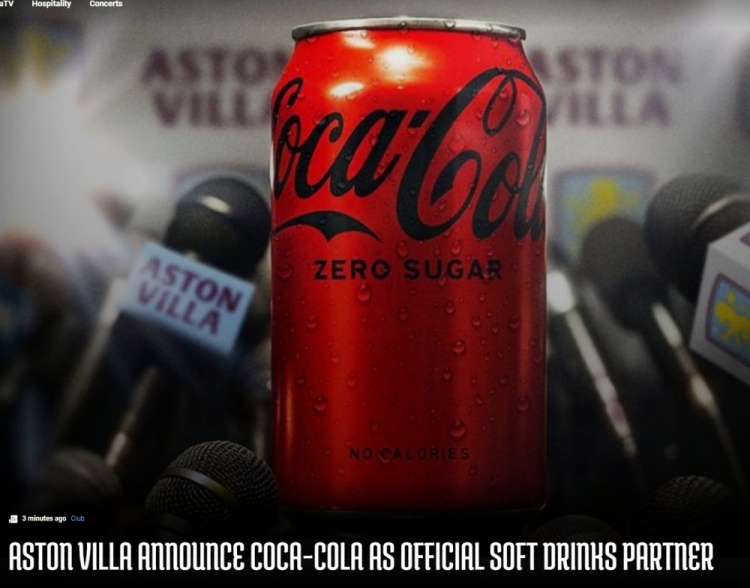 阿斯顿维拉足球俱乐部荣幸宣布与可口可乐公司达成官方合作伙伴关系,根据协议,可口可乐将成为俱乐部官方软饮合作伙伴、全球合作伙伴,同时赞助维拉男足与女足所有队伍。